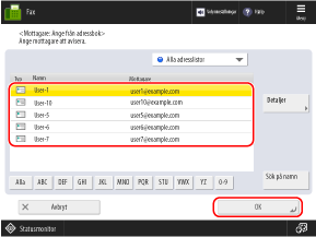 Öppna adressbokens skärm och välj mottagaren (e-postadressen) som ska ställas in som meddelandemottagare och tryck på [OK].