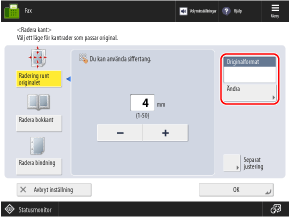 Tryck på [Ändra], välj storleken på originalet och tryck på [OK].