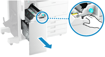 Fylla på häftklamrar i häftesefterbehandlaren