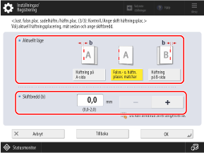 Välj det aktuella tillståndet för häftningspositionen och ställ in skiftbredden.