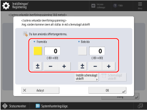 Tryck på knappen [Framsida] eller [Baksida] för att välja det och ange sedan värdet.