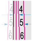 När indikatorns centerlinje ligger utanför papperskanten (när indikatorns centerlinje inte är utskrivet på sidan) ska du ställa in ett positivt (+) värde. Utskriftspositionen flyttas mot höger kant enligt matningsriktningen.