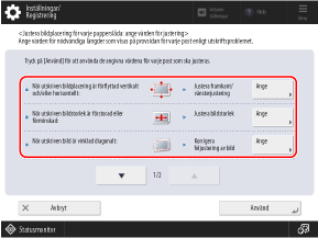 Använd kontrollpanelen för att utföra justeringar. Du kan inte utföra justeringar med hjälp av Remote UI (Fjärranvändargränssnittet) från en dator.