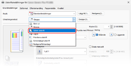 För [Utmatningsmetod], välj [Säker utskrift].