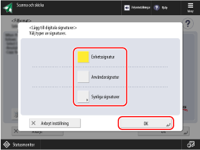Tryck på [Lägg till dig. signaturer] eller [Lägg till enhetssign.].
