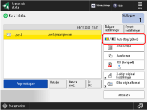 Upptäcker automatiskt originalets färg. Färgoriginal skannas i färg och svartvita original skannas i gråskala.