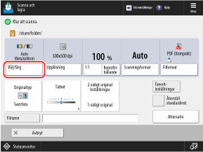 På skanningsskärmen trycker du på inställningsknappen för att välja färg.