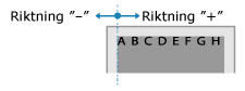 Ange förskjutningsbredden som ett positivt (+) värde för att justera förskjutningen till högerdelen av pappret, eller ett negativt (-) värde för att justera den till vänsterdelen.