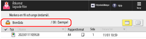 Tryck på [Skriv ut lista] längst ner till höger på skärmen för att skriva ut en lista över filer som har sparats i brevlådan.