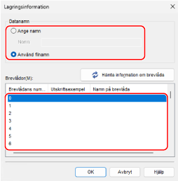 Du kan klicka på [Hämta information om låda] för att visa de registrerade namnen på brevlådorna.