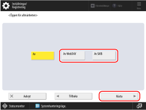 För att använda Avancerat utrymme som ett offentligt lagringsutrymme i maskinen måste du konfigurera inställningarna för att öppna Avancerat utrymme på nätverket som en SMB- eller WebDAV-server.