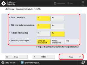 * När det här alternativet är inställt till [På] är det inte möjligt att ansluta till Avancerat utrymme från ett klientoperativsystem som inte har stöd för SMB v3.0-krypteringskommunikation.