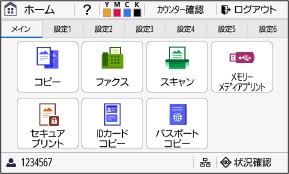 | | ショートカットボタン(コピー)「よく使う設定」として登録したコピーの設定を呼び出します。 ボタンの名称は設定により異なります。 ショートカットボタンを追加する |