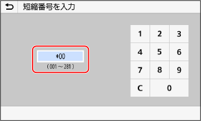 スキャン/ファクスの画面で宛先を指定する場合は、宛先の一覧から指定するほか、短縮ダイヤルの番号を入力して指定することもできます。