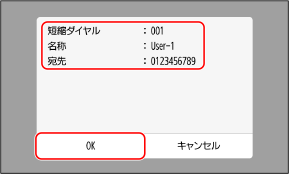 [ホーム]画面からアドレス帳を呼び出して宛先を指定した場合は、指定した宛先が入力された状態でスキャン/ファクスの画面が表示されます。