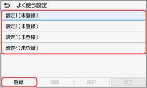 スキャン/ファクス/コピー機能で、目的に応じた設定や、覚えておきたい設定を「よく使う設定」として登録します。