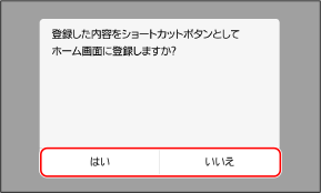 [いいえ]を選択すると、「よく使う設定」のみが登録されます。あとから[ホーム]画面にショートカットボタンを登録することもできます。