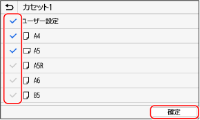 非表示にする用紙サイズのチェックマークを外し、[確定]を押す