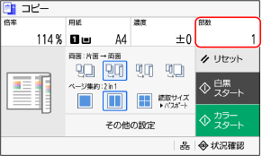 [部数]を押し、テンキーで部数を入力して、[閉じる]を押します。