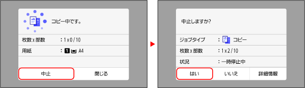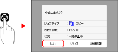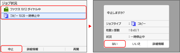 ジョブの一覧画面が表示された場合は、中止するジョブを選択し、[中止]