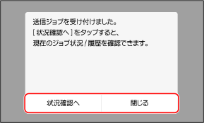 スキャンしたデータの送信/保存状況や履歴を確認する[閉じる]を押すと、スキャンの画面に戻ります。