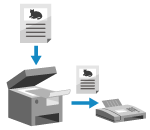 ![]() | 本機で文書や写真などの印刷物(原稿)をスキャンし、白黒の画像に変換して送信します。 ファクスを送信する 送信したファクスを、特定の宛先に自動的に転送/保存することもできます。 送信したファクスを自動転送/バックアップする |