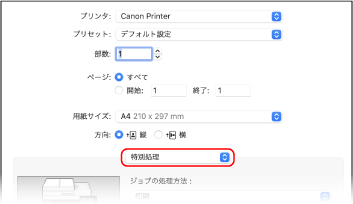 プリントオプションのポップアップメニューから[特別処理]を選択する