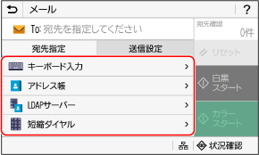 Cc/Bccの宛先は、[アドレス帳]または[短縮ダイヤル]から指定します。
