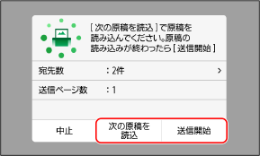 続きの原稿がある場合は、原稿台ガラスにセットし、[次の原稿を読込]を押します。