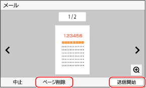 送信したくないページがある場合は、そのページを表示して[ページ削除]を押します。
