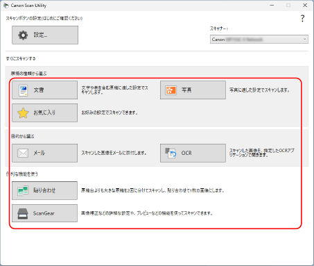 ScanGear MFを選択すると、より詳細なスキャンの設定ができます。詳しくは、ScanGear MFの画面の[