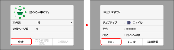 本機でスキャンした場合は、画面の表示に従ってスキャンを中止できます。