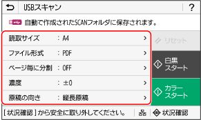 USBメモリーを差し込む/取り外すメモリーメディアの操作画面が表示された場合は、[USBスキャン]を押し、手順5に進みます。