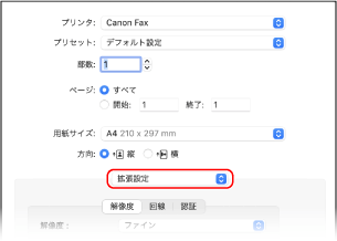 2 | プリントオプションのポップアップメニューから[拡張設定]を選択する プリントオプションが表示されていない場合は、画面下の[詳細を表示]をクリックします。 |