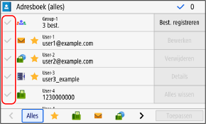 Om de informatie van een bestemming te bekijken, selecteert u het selectievakje van die bestemming en drukt u op [Details].
