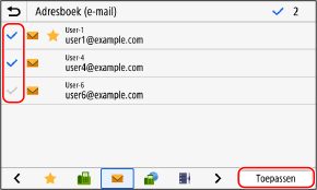 Selecteer de selectievakjes van de bestemmingen die u aan de groep wilt toevoegen, en druk op [Toepassen].