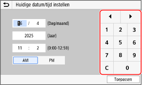 Tik op de nummers van de numerieke toetsen om een waarde in te voeren.
