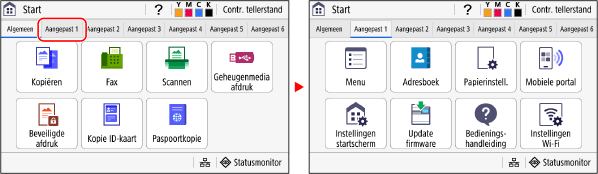 Als u op een tabblad tikt, verschijnt het scherm voor het geselecteerde tabblad.