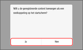 Als u [Nee] selecteert, wordt de Favoriete Instelling geregistreerd, maar er wordt geen sneltoets toegewezen. U kunt later een sneltoets toewijzen aan het scherm [Start]. Sneltoetsen toevoegen
