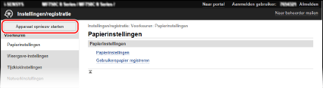 Als u andere instellingen kiest met behulp van hetzij het bedieningspaneel hetzij Externe UI, kunt u het apparaat opnieuw opstarten met behulp van de hoofdschakelaar of Externe UI.