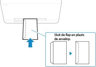 U kunt enveloppen uitsluitend aan de voorkant bedrukken (de kant zonder lijm). Als u enveloppen plaatst, let dan op de afdrukrichting en kijk goed welke kant naar boven wijst.