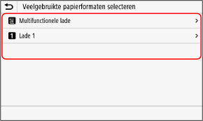 Het scherm met papierinstellingen toont de geregistreerde veelgebruikte papierformaten. Als ongebruikte papierformaten worden weergegeven, kunt u deze verbergen voor iedere papierbron, zodat het selecteren van een papierformaat makkelijker gaat.