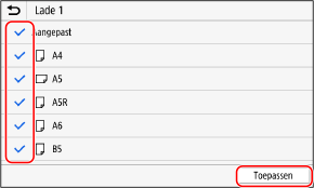 Maak het selectievakje van de te verbergen papierformaten leeg en klik op [Toepassen].