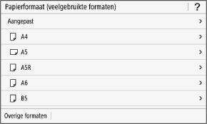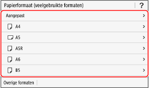 Druk op [Overige formaten], en selecteer het papierformaat uit de weergegeven lijst.