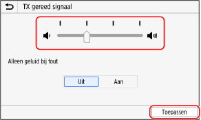 Beweeg de schuif naar links of rechts om het volume aan te passen, en druk op [Toepassen].