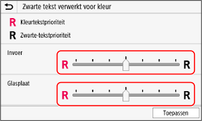 In [Invoer] of [Glasplaat] maakt u de aanpassing met prioriteit voor hetzij gekleurde tekst hetzij zwarte tekst.