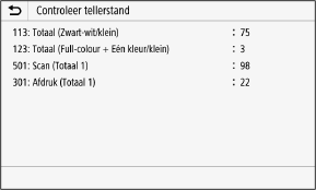U kunt een teller weergeven die het tot op heden totaalaantal gekopieerde en afgedrukte pagina's weergeeft op zwart-wit en kleur.