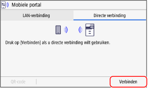 ![]() | Gebruik Canon PRINT om eenvoudig verbinding te maken door met een mobiel apparaat de QR-code te scannen die op het scherm van het apparaat wordt weergegeven. |