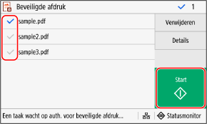 Selecteer het selectievakje van de beveiligde gegevens die u wilt afdrukken, en druk op Start.