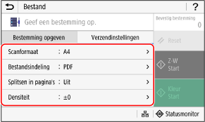 Controleer of de bestemming klopt en druk dan op [Scannen starten].
